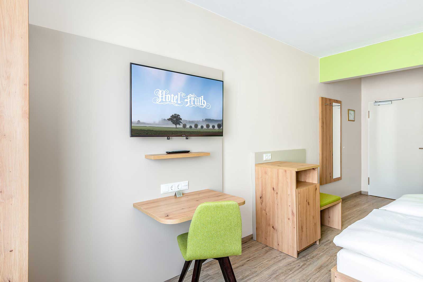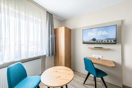 Das Zimmer kann auf Wunsch auch als Zweibett- oder Dreibettzimmer genutzt werden. Ideal für Geschäftsreisende und Urlauber, die Komfort und Funktionalität schätzen.